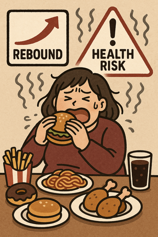また、極端な食事制限は、ストレスを溜めやすく、ドカ食いなどのリバウンドを引き起こす原因にもなります。