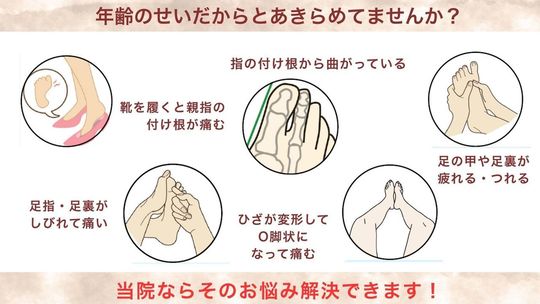 『もう歳だから仕方ない』そうあきらめかけていた方の笑顔を見るたびに、足の大切さと施術の力を実感しています。