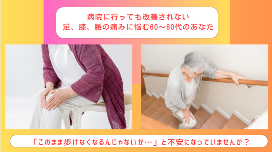 正しい方法を身につければ、あなたも痛みから解放され、自由に歩ける生活を取り戻せます。